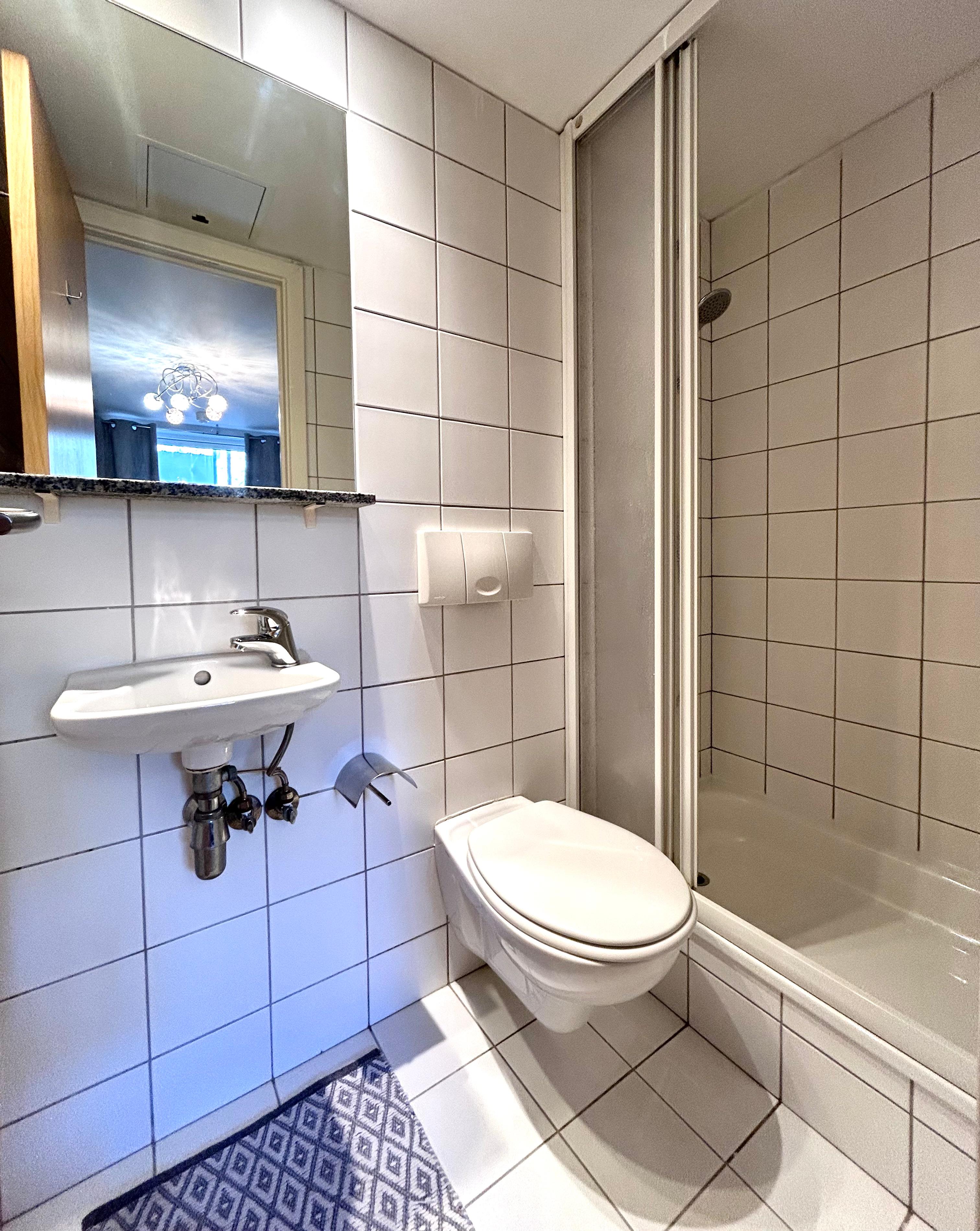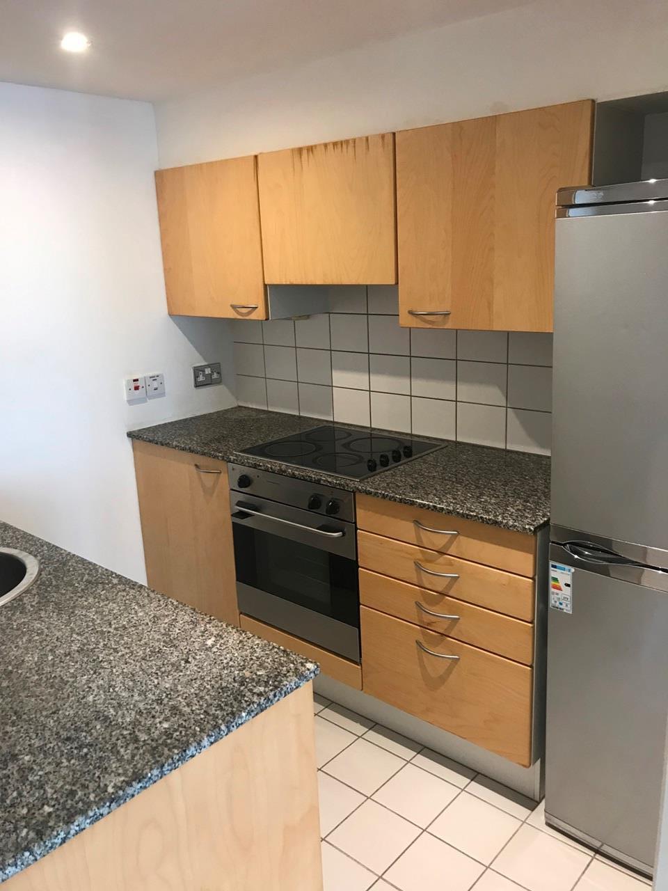 Modern fitted kitchen with oven, fridge/freezer, dishwasher & washing machine