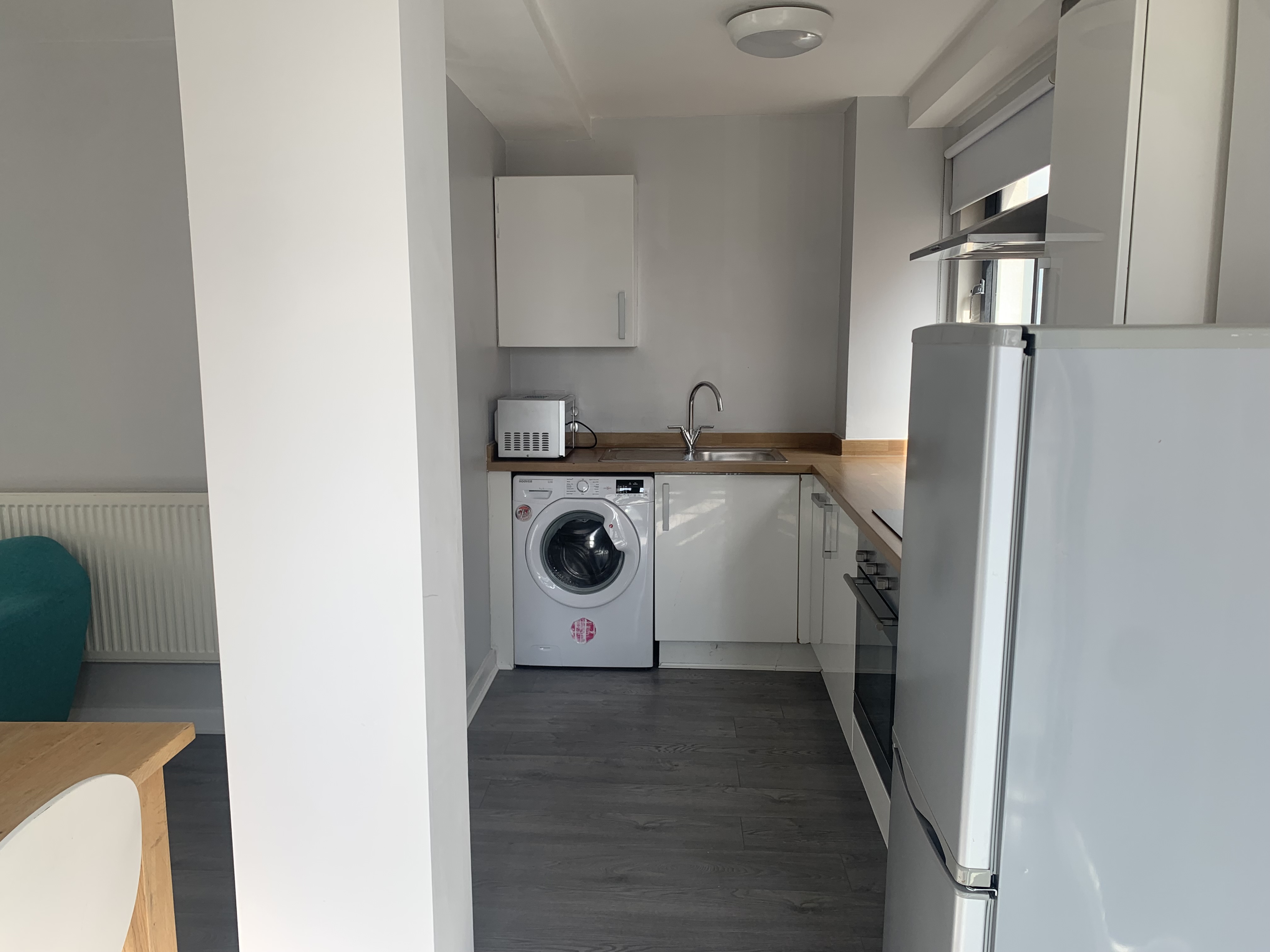 Situated on the third floor, the property features one main bathroom and two en-suite bedrooms, along with a brand-new fitted kitchen. The kitchen comes fully equipped with modern appliances, including an oven, dishwasher, washing machine, fridge-freezer, toaster, and microwave.